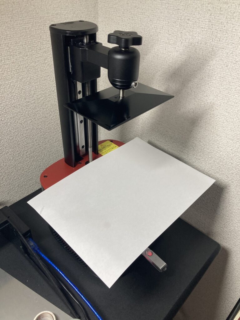 レジンタンクを外して、LCDパネルの上にA4用紙を置きます。